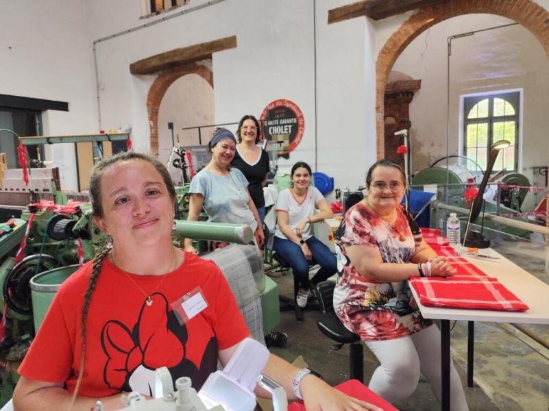 Le musée avait invité l’esatco pour faire découvrir le savoir-faire autour du mouchoir de Cholet, fabriqué exclusivement dans l’atelier couture de l’esatco de Cholet, grâce au partenariat esatco Cholet - Musée.